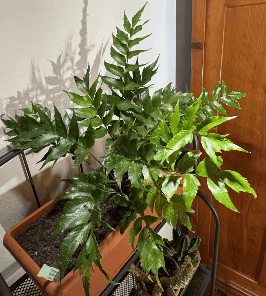 Il Cyrtomium falcatum è una specie di felce originaria dell’Asia orientale che appartiene alla famiglia delle felci dei boschi, le Dryopteridaceae. In natura cresce nelle fessure delle scogliere costiere, sulle rive dei corsi d’acqua, sui pendii rocciosi e in altre zone umide. Il suo nome comune è felce agrifoglio o felce falcata, si distingue per la sua robustezza e per l’aspetto coriaceo e brillante delle foglie. A differenza di molte felci con fogliame delicato, le foglie del Cyrtomium falcatum sono coriacee e lucide, quasi cerose, un adattamento che le conferisce resistenza.