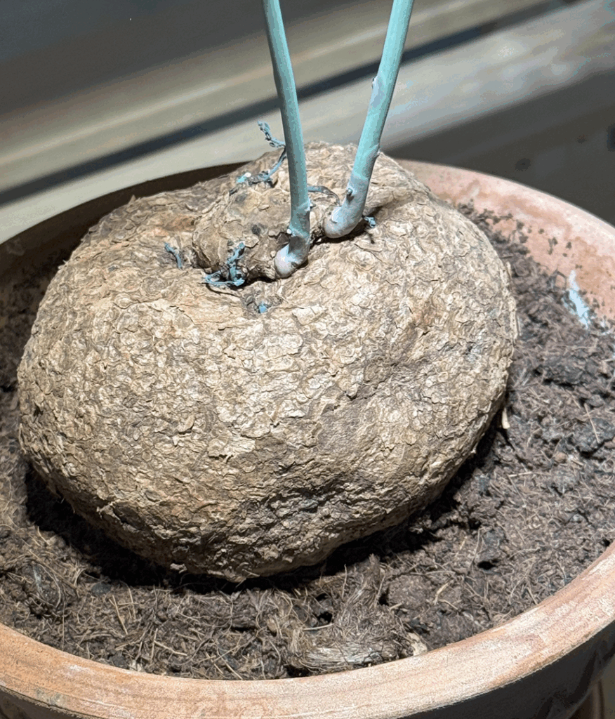La scorsa primavera ho preso per la prima volta un bellissimo caudex di Stephania rotundifolia (dal diametro di 12 centimetri) a Este in Fiore. Ho già coltivato per 9 anni la Dioscorea elephantipes e il suo caudice, grande quanto una nocciola nel 2015, era diventato grosso quanto una mela e poi è marcito a causa di un’annaffiatura di troppo.